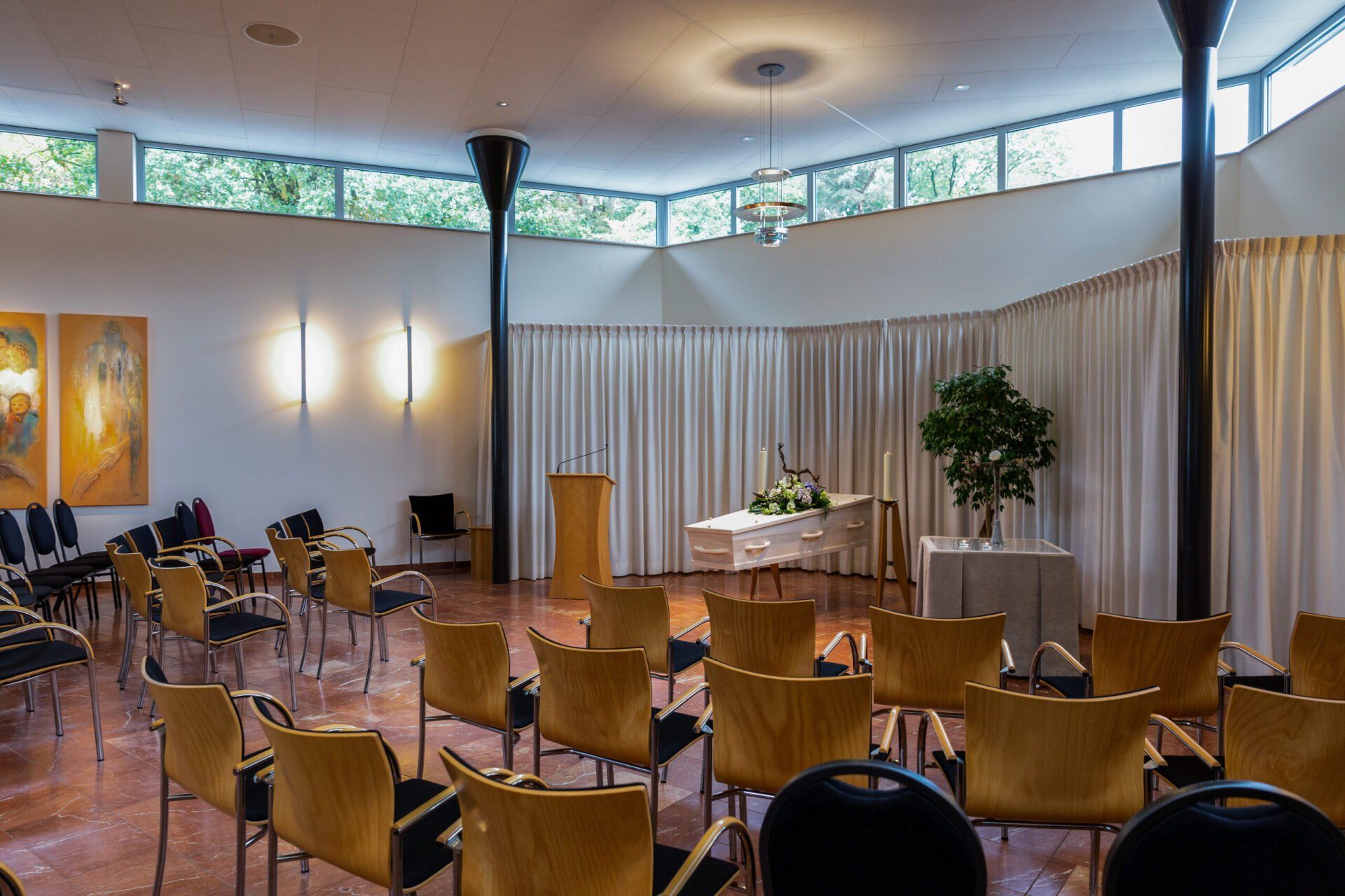 Afscheid in een door u uitgekozen uitvaartlocatie.. De crematie of begrafenis vindt plaats in een door ons gekozen crematorium of begraafplaats. Bij het afscheid kunnen er 10 tot 50 mensen aanwezig zijn